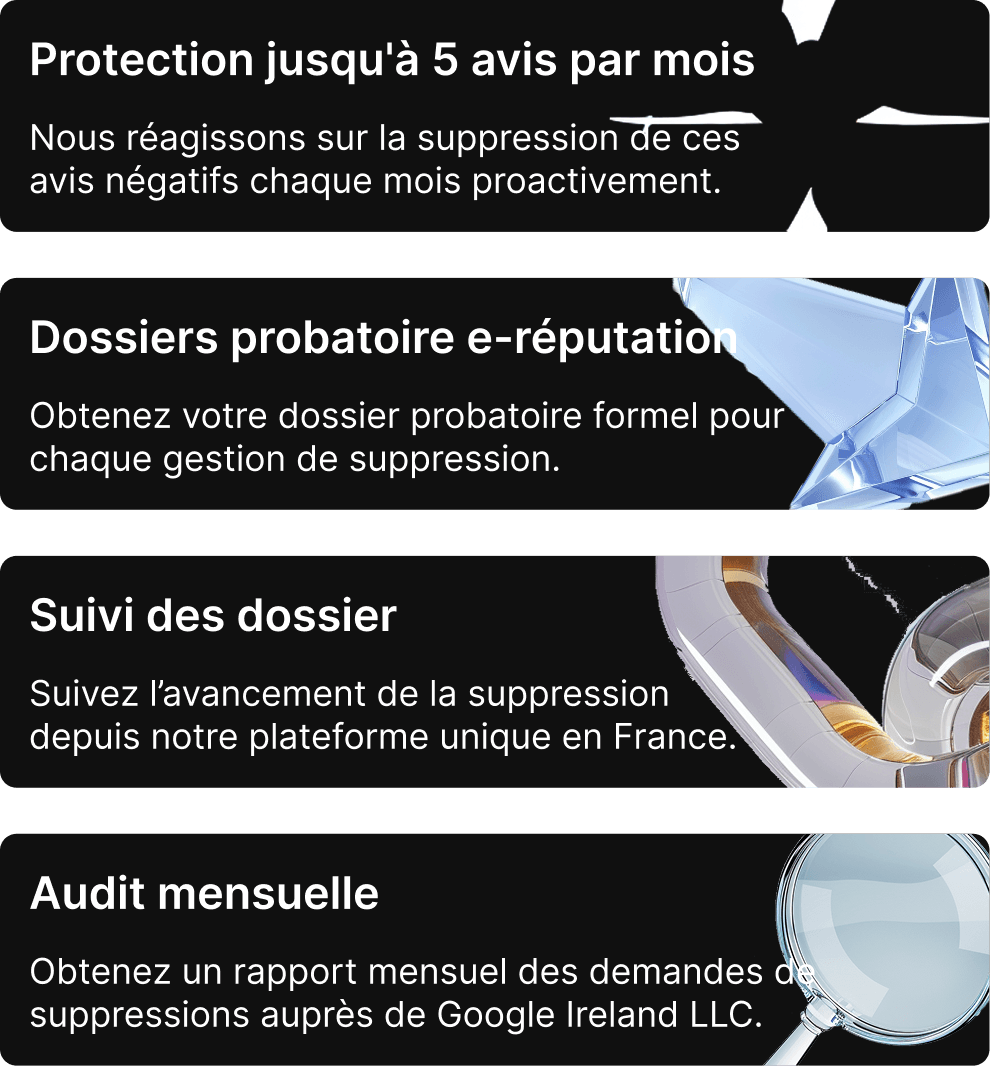 “Un concurrent nous a inondés de 12 faux avis négatifs en 72h. Meteor a pris en charge le dossier, tout analysé, et les 12 avis ont été retirés. On est passés de 3,2★ à 4,6★. C’est littéralement une assurance-vie digitale.”