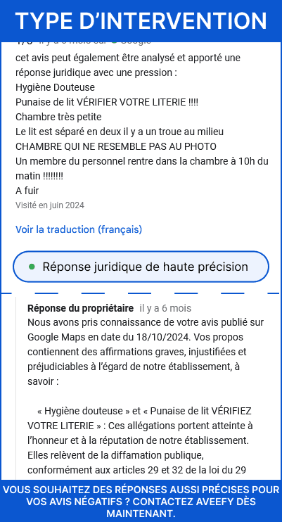 Service de surveillance proactive de vos avis négatifs avec réponse juridique de ces derniers
