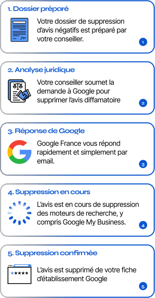 “Aveefy nous a énormément aidés à supprimer avis négatifs Google et à protéger notre image en ligne. Je suis passé de 3,8 à 4,9. Hallucinant !”