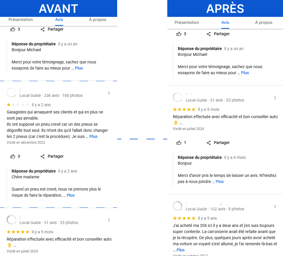 “Aveefy nous a énormément aidés à supprimer avis négatifs Google et à protéger notre image en ligne. Je suis passé de 3,8 à 4,9. Hallucinant !”